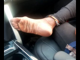 Description: Posing her mature wrinkled soles in J Dawgs truck. |