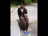Description: Shy Jamaican girl at Freedom Pk ATL. We finally got her to do a shoe strip but she said her feet were too stinky! pt2b |